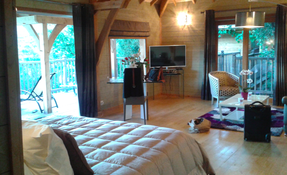 Nous souhaitions marquer le coup . L'idéal aurait été de partir un peu loin pour un court séjour mais nous n'avions pas les moyens, ni financiers, ni logistiques, alors nous avons opté pour de l'insolite. Très vite nous sommes tombés sur ces fameuses cabanes perchées dans les arbres mais c'était soit trop loin, soit indisponible le week-end souhaité soit trop spartiate... et puis nous sommes arrivés sur LE site qui nous a fait rêver. Pas loin de chez nous "luxe, sauna, jacuzzi" des mots qui font briller les yeux... surtout quand l'idée est de fêter une rencontre, notre rencontre.